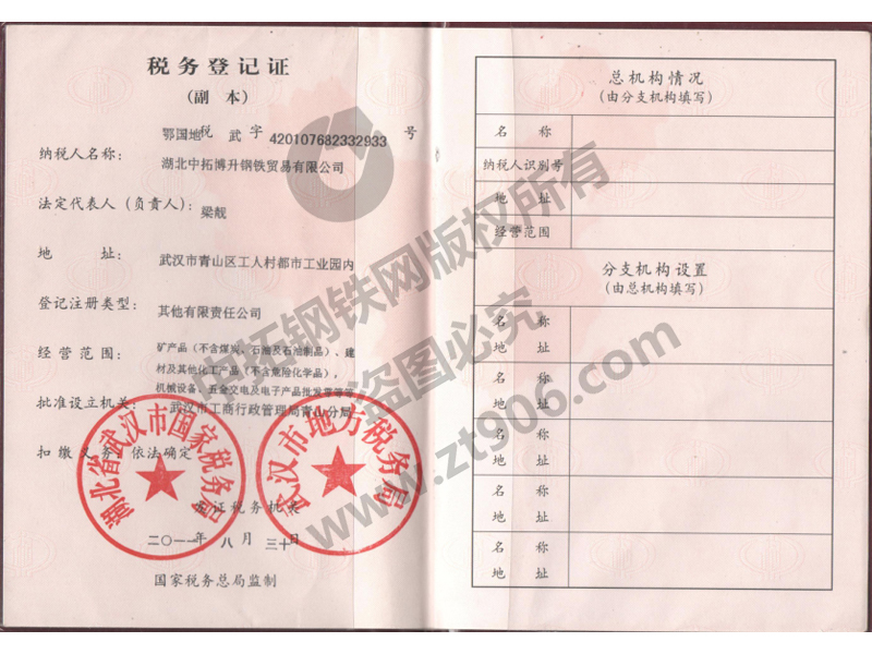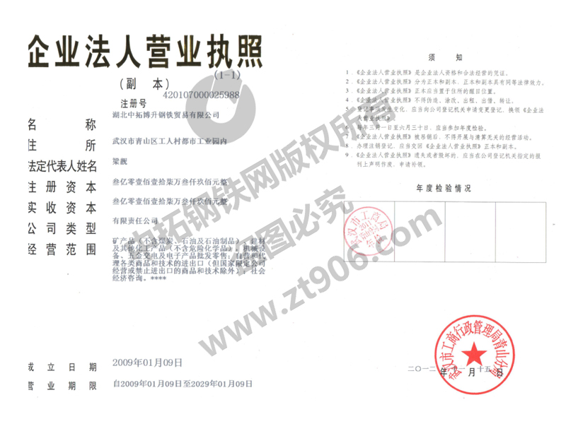 户名:湖北中拓博升钢铁贸易有限公司 开户行:农行武汉洪山广场支行 830039 银行账号:17-0308 0104 0008 380 大额支付行号:103521003084